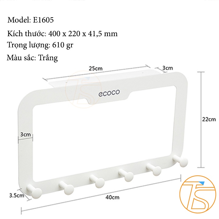 TECHSSHOP xin giới thiệu mẫu móc treo đồ sau cửa tiện lợi vừa ngăn nắp vừa tận dụng không gian sau cánh cửa thuận treo đồ khi đi về hoặc đi về nhà, mẫu mã hàng ecoco chất liệu thép cứng cáp và thời trang hiện đại1 Thông tin móc treo 6 móc ecoco