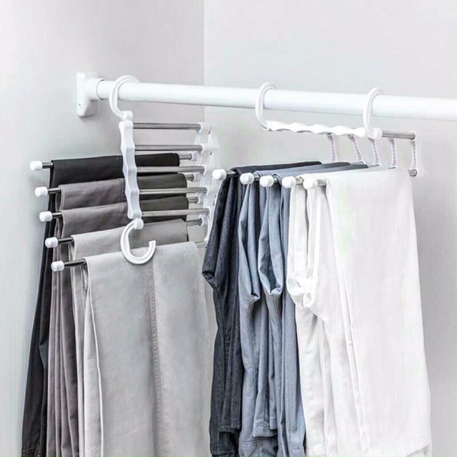 ✔️Thiết kế 5 trong 1, giữ cho quần của bạn sạch sẽ và gọn gàng, tiết kiệm không gian hơn. Có hai móc trên đầu. Bạn có thể sử dụng hai móc cho hệ thống treo ngang hoặc chỉ sử dụng móc cho hệ thống treo dọc. Năm ống thép không gỉ được sử dụng, mỗi ống có thể được kéo ra ngoài để dễ dàng treo và tái chế. Có thể được sử dụng như một giá phơi. Được làm bằng thép không gỉ chất lượng cao, bền và dễ dàng mang theo. Thiết kế 5 trong 1 giữ cho quần của bạn sạch sẽ và gọn gàng, tiết kiệm không gian hơn.