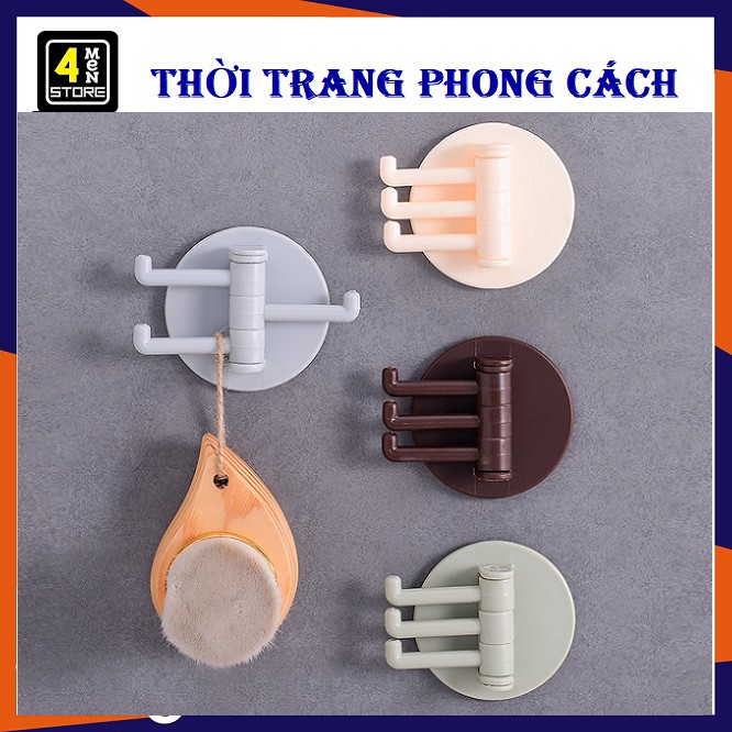 Móc Treo Đồ Tròn 3 chạc Chịu Lực dán tường treo đồ dùng trong nhà bếp/nhà tắm xoay tiện lợi chắc chắn