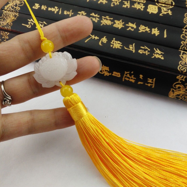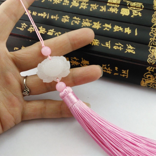 Móc chỉ lụa, mặt hoa sen nhựa trắng tinh khiếtXuất xứ: Quảng Châu.