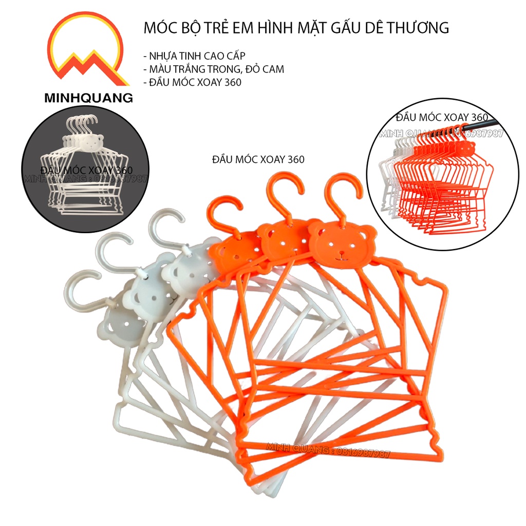 Nhà cửa & Đời sống > Sắp xếp nhà cửa > Mắc áo || móc treo quần áo bộ trẻ em size nhỏ size lớn hình mặt gấu dễ thương, chất liệu nhựa trắng trong cao cấp đầu móc xoay 360Còn hàng