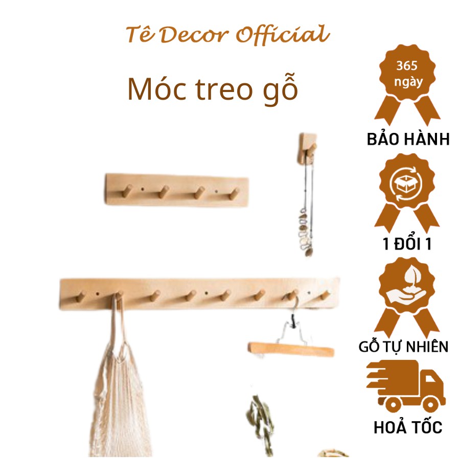 Móc treo quần áo gỗ gắn tường Tee Decor - Thanh treo đồ đa năng, móc túi xách, áo khoác, decor phòng đẹp🍀 Thông tin Móc treo quần áo gỗ gắn tường: