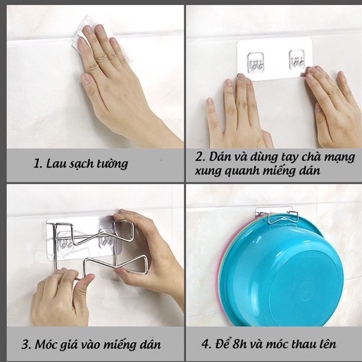 Móc treo thau chậu, đồ, khăn dán tường nhà tắm chịu lực siêu chắc siêu bền inox 304