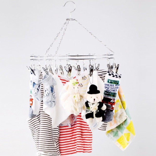 Móc tròn inox phơi đồ sơ sinh cho bé loại 20 kẹp, phơi tất, khăn, yếm, mũ, thóp - 2X MART