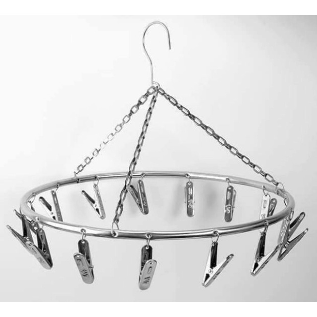 👍Móc treo quần áo tròn với 20 kẹp giúp bạn phơi đồ tiện hơn, chất liệu Inox chắc chắn, sạch bền tiết kiệm diện tích