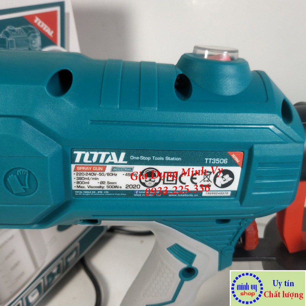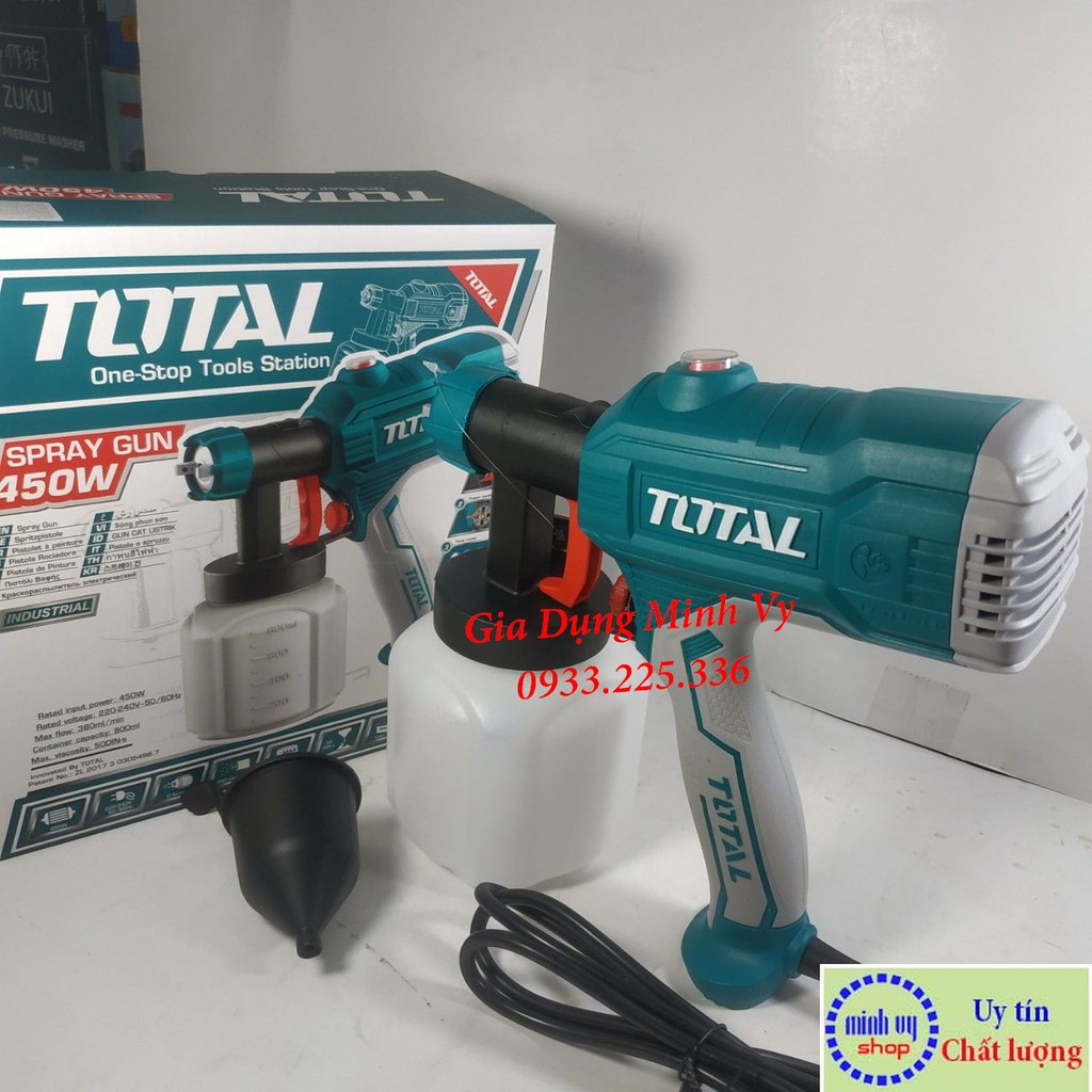 Súng phun sơn Total TT3506 hoạt động bằng nguồn điện, là dụng cụ chuyên dùng của những thợ sơn trong công việc hàng ngày. Máy phun sơn này có kích thước nhỏ gọn, tính cơ động cao, dễ dàng mang theo khi có việc cần xài tới. Máy có năng suất phun trung bình với thiết kế tay cầm được bọc lớp cao su êm, có độ ma sát cao để hạn chế trơn trượt khi chẳng may tay chảy mồ hôi hoặc dính dầu nhớt trong quá trình sử dụng.>>>MẪU 2020 VỀ CẢI TIẾN NÂNG CẤP TỪ 350w LÊN 450W NÊN KHÁCH LƯU Ý VÀ LỰA CHỌN<<<