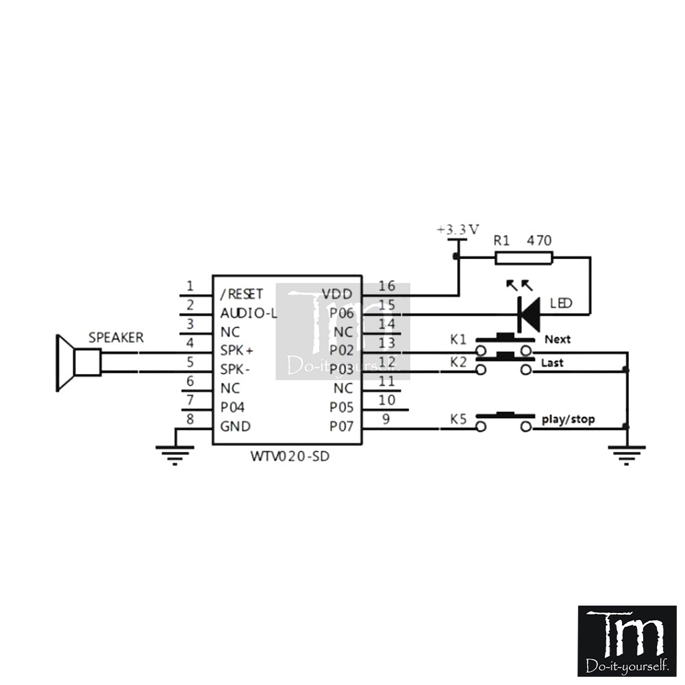❇ Module âm thanh WTV020-SD giao tiếp SPI với Vi Điều Khiển, từ Vi Điều Khiển xuất tín hiện điều khiển các chức năng Play/Pause/Stop/Volume sau đó đưa vào module khuếch đại (âm thanh sẽ phát ra lớn) hoặc phát trực tiếp ra loa ngoài ( âm thanh sẽ phát ra nhỏ hơn)