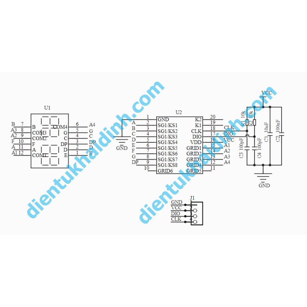 Giới thiệu module 4 led 7 đoạn 0.36 inch, IC Tm1637 5v30mA kde3276