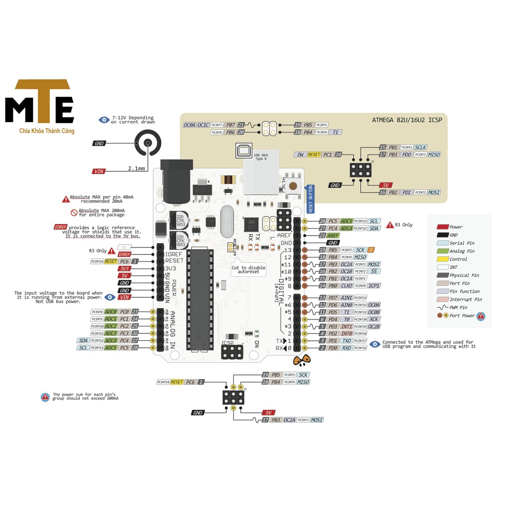 Thiết Bị Điện Gia Dụng > Khác || Module arduino UNO R3 chip cắm Atmega16u2 (board phát triển) kèm cápCòn hàng