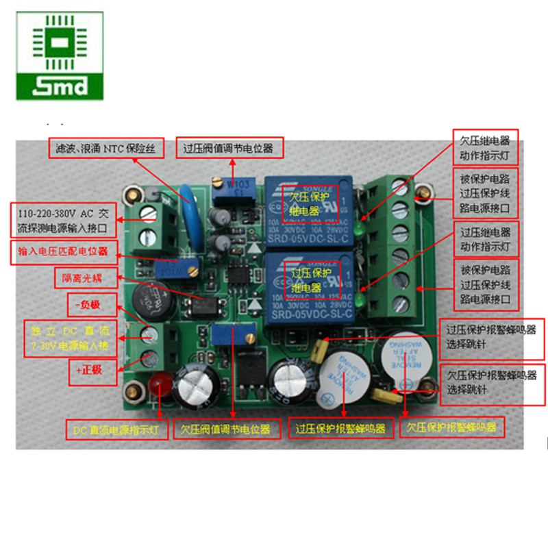 Module bảo vệ quá áp 220V 110V AC. Giới hạn dưới 190 V, Giới hạn trên230 V。 Đó là, các điện áp là dưới số không.AC 190 V Thời gian,Thấp áp tiếp sức take-off, Cao hơn so với 230 V Thời gian, Quá Áp (Quá Áp) Tiếp Sức take-off. nếu khác phạm vi điện áp được yêu cầu, Có Thể được tùy chỉnh 。BỘ SẢN PHẨM BAO GỒM: