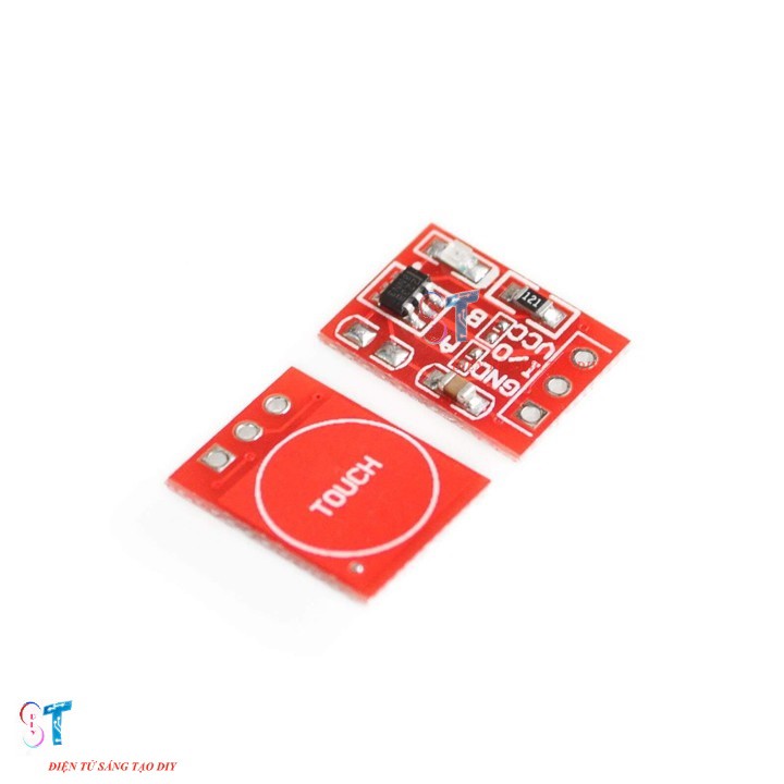 - Cảm ứng 1 chạm điện dung TTP223 được sử dụng trong các ứng dụng cảm ứng điện dung bàn phím, công tắc chìm báo động, quạt điện,… Với ưu điểm có thể nhận biết thao tác chạm thông qua điện dung của tay người, cảm biến có thể phát hiện xuyên qua các vật thể phi kim có độ dày tối đa lên đến 5mm. Phiên bản mới nhất màu đỏ độ nhậy hoàn hảo tăng khoảng cách. Cấp điện 2.5-5.5VDC vào chân VCC và GND, nếu có thao tác chạm cảm ứng chân I O sẽ xuất tín hiệu và đèn Led sẽ sáng tắt báo hiệu.