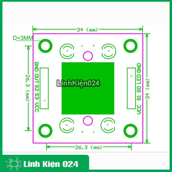 +Linh kiện điện tử Module cảm biến màu TCS3200 với khả năng nhận biết 3 mầu cơ bản RGB và 4 đèn LED trắng. Các TCS3200 có thể phát hiện và đo lường gần như tất cả màu sắc có thể nhìn thấy. Ứng dụng bao gồm kiểm tra đọc dải, phân loại theo màu sắc, cảm biến ánh sáng xung quanh và hiệu chuẩn, và kết hợp màu sắc, đó chỉ là một vài ứng dụng. TCS3200 có các bộ tách sóng quang, có 2 bộ lọc màu sắc là bộ lọc màu đỏ, xanh dương, hoặc màu xanh lá, hoặc không có bộ lọc ( rõ ràng). Các bộ lọc của mỗi màu được phân bố đều khắp các mảng để loại bỏ sai lệch vị trí giữa các điểm màu. Bên trong là một bộ dao động tạo ra đầu ra sóng vuông có tần số là tỷ lệ thuận với cường độ của màu sắc lựa chọn.