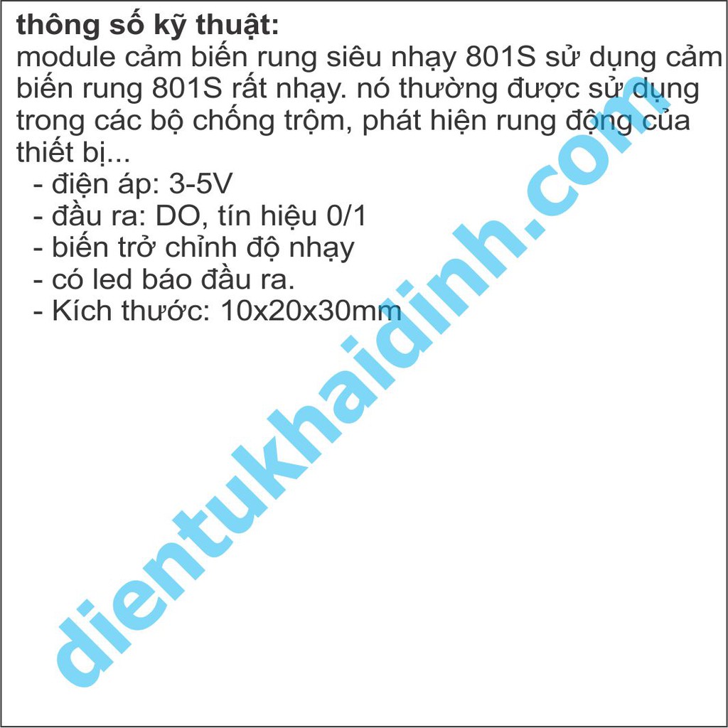 Giới thiệu module cảm biến rung siêu nhạy 801S, 3P, áp: 3-5V kde3107