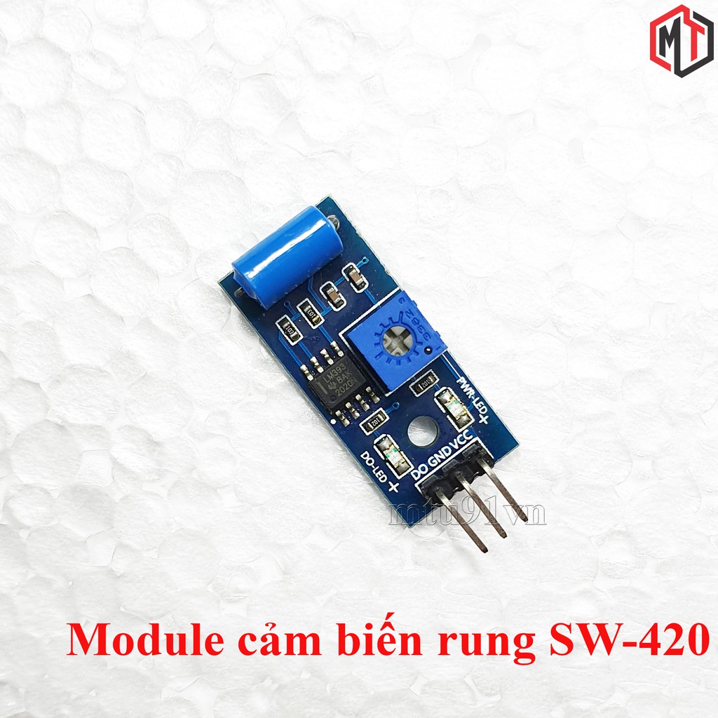 Module cảm biến rung sử dụng bộ cảm biến SW-420 cùng IC LM393 nhằm phát hiện các rung động trong một ngưỡng xác định ( ngưỡng này có thể thay đổi bằng biến trở trên module).Cảm biến rung SW420 có thể phát hiện sự rung động từ mọi góc độ, và thường được sử dụng cho chống trộm, cảm ứng, rung động và đo sốc.