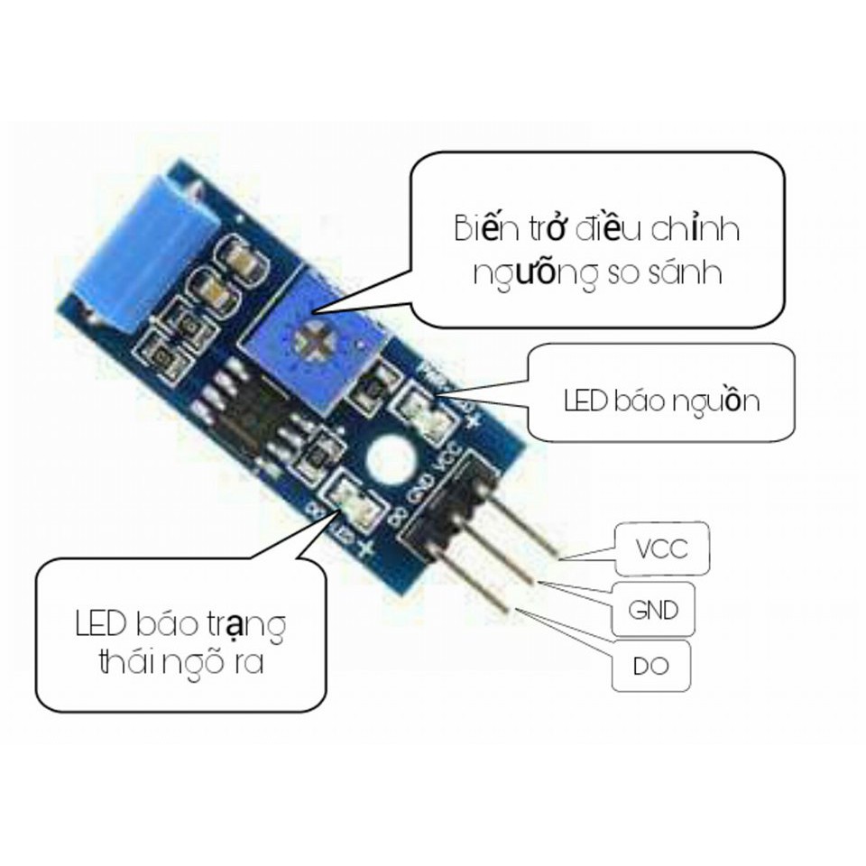 - DO: Tín hiệu ra 0 và 1 , DO đưa vào IO của Vi Điều Khiển hoặc Điều Khiển Relay qua Transistor