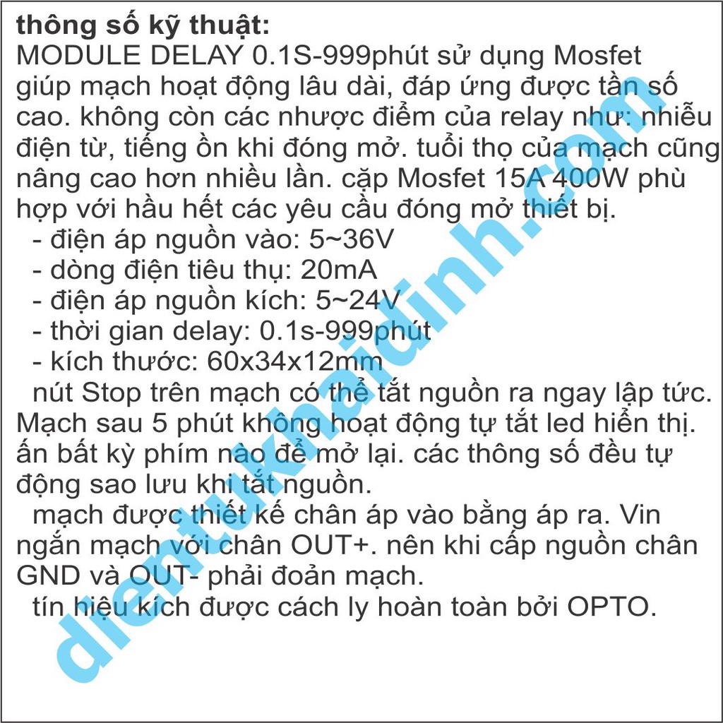 Giới thiệu MODULE DELAY, đóng mở thiết bị 0.1S-999phút 3 LED 7 đoạn HIỂN THỊ, 4 PHÍM NHẬP, dùng MOSFET kde4900
