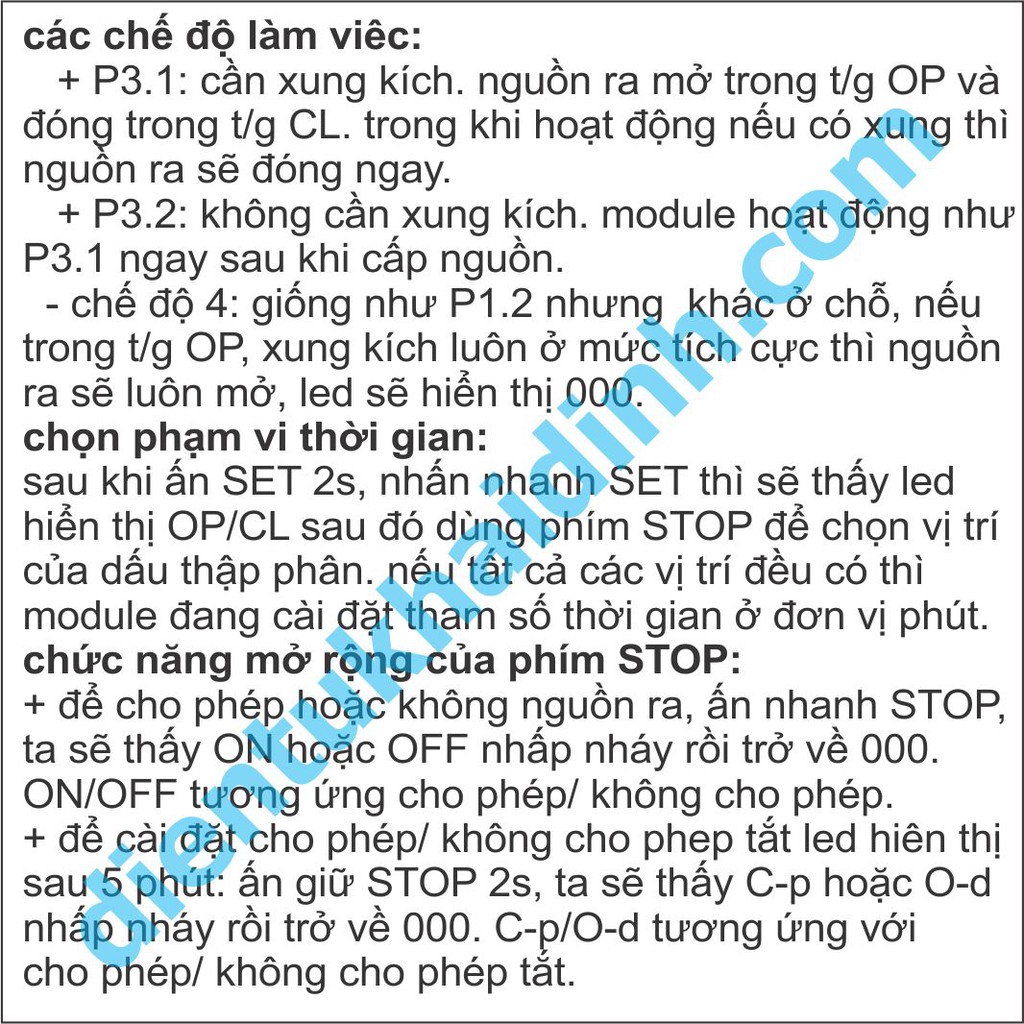 MODULE DELAY, đóng mở thiết bị 0.1S-999phút 3 LED 7 đoạn HIỂN THỊ, 4 PHÍM NHẬP, dùng MOSFET kde4900