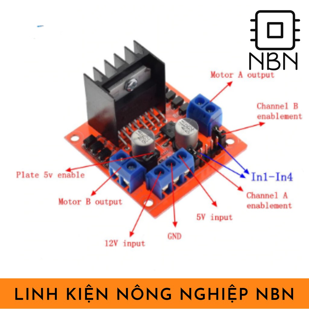 🔥Chi tiết sản phẩm✅Mạch điều khiển động cơ DC ⚡Driver L298N có khả năng điều khiển 2 động cơ DC, dòng tối đa 2A mỗi động cơ, mạch tích hợp diod bảo vệ và IC nguồn 7805 giúp cấp nguồn 5VDC cho các module khác (chỉ sử dụng 5V này nếu nguồn cấp <12VDC).