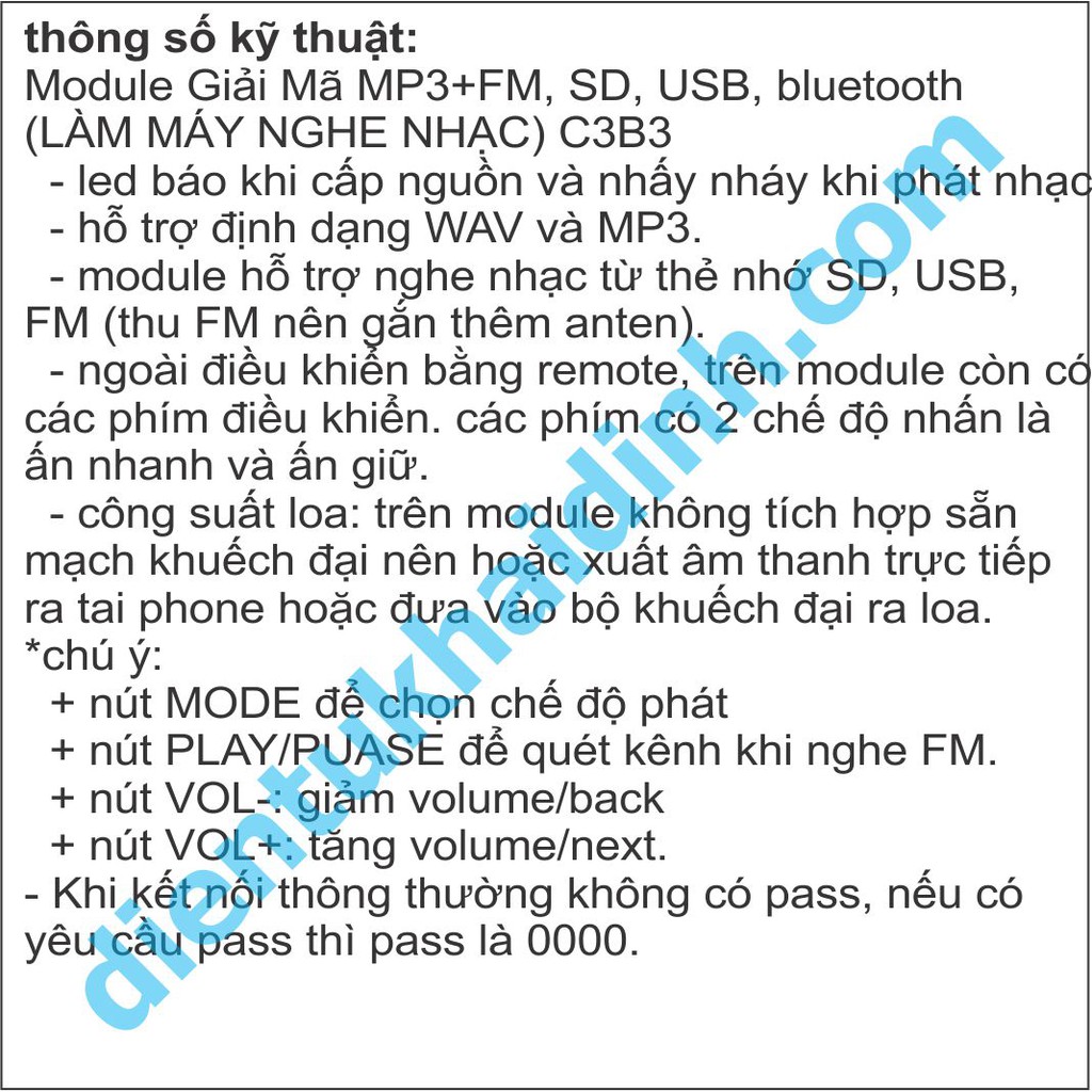 Giới thiệu Module Giải Mã MP3+FM, microSD, USB + REMOTE, có bluetooth (LÀM MÁY NGHE NHẠC) C3B3 kde5237