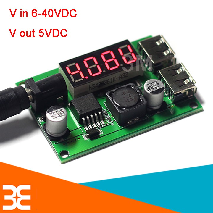 Giới thiệu Module Hạ Áp Buck DC-DC Vin 6-40VDC Vout 5VDC 3A Có 2 Đầu Ra USB V3