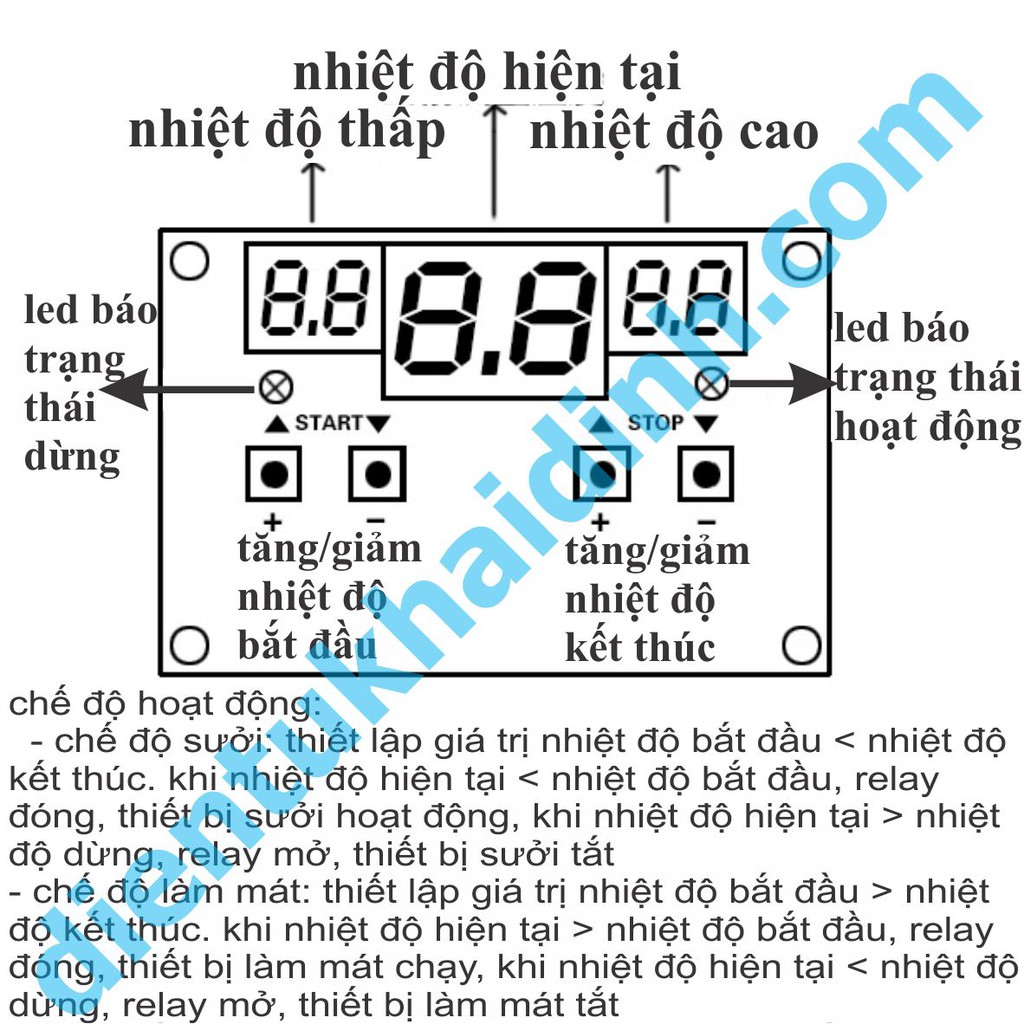 Giới thiệu MODULE KHỐNG CHẾ NHIỆT ĐỘ TRÊN, DƯỚI XH-W1401 6 LED, 4 SWITCH kde4682