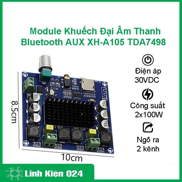 Thiết Bị Âm Thanh > Amply và đầu chỉnh âm || Module khuếch đại âm thanh bluetooth AUX XH-A105 TDA7498 2x100WCòn hàng