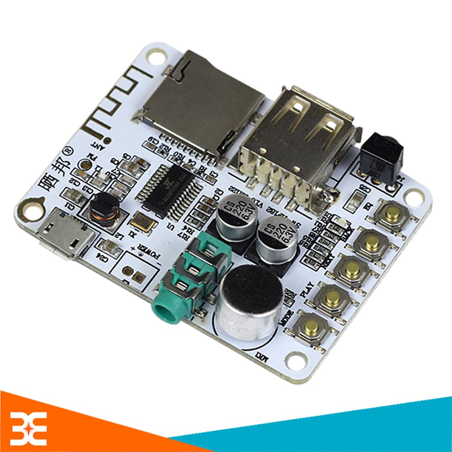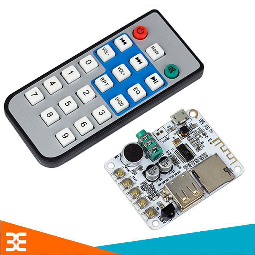 Module Khuếch Đại Âm Thanh Tích Hợp Bluetooth 5.0- USB- Thẻ Nhớ- FM Kèm RemodeMạch Giải Mã Âm Thanh Bluetooth Kèm Remote có chức năng giải mã tín hiệu âm thanh được phát từ bluetooth, ngoài ra mạch còn tích hợp. Module khuếch đại hỗ trợ đọc thẻ nhớ, bắt sóng FM, đọc được file âm thanh từ USB.