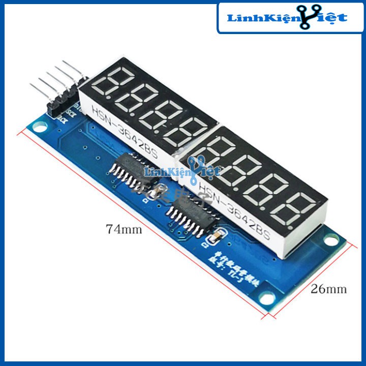 Mạch hiển thị 8 led 7 đoạn 74HC595 được thiết kế giúp bạn có thể dễ dàng điều khiển và hiển thị thông tin lên 8 led 7 đoạn chỉ với 3 chân giao tiếp thông qua IC ghi dịch 74HC595, ngoài ra mạch còn có khả năng mở rộng thêm các led tiếp theo qua cổng đầu ra nối tiếp, mạch có bộ thư viện đi kèm dễ sử dụng phù hợp cho các ứng dụng: bộ đếm, đồng hồ,...Thông số kỹ thuật: