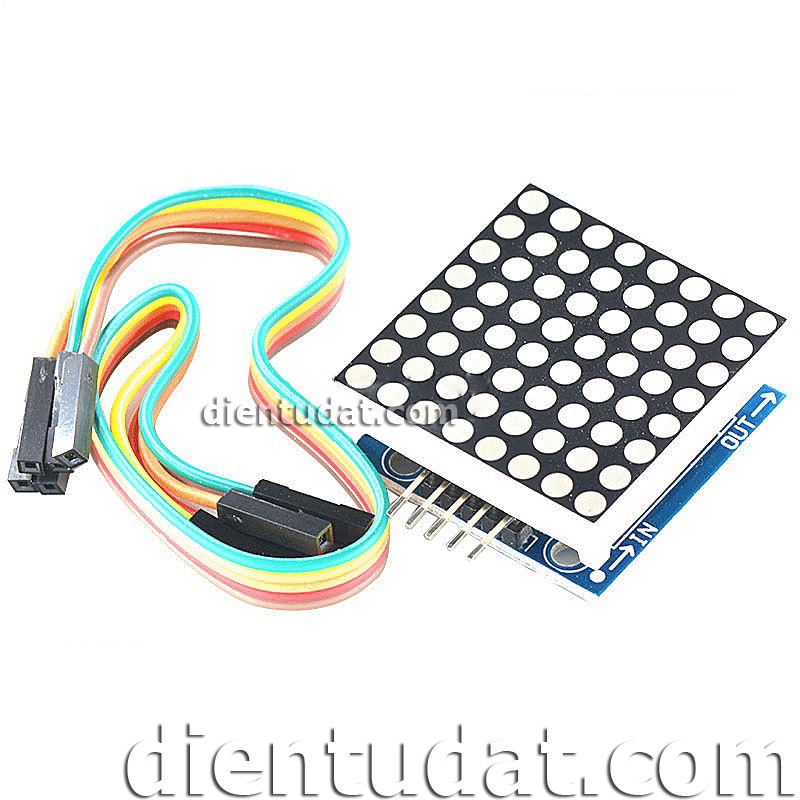 Mạch sử dụng Chip Max7219 để điều khiển led matrix 1 cách dễ dàng và đơn giản hơn, chỉ cần 3 dây dữ liệu và 2 dây nguồn. Module 8x8 ledmatrix sử dụng rất đơn giản, có thể điều chỉnh độ sáng của led ngay trên phần mềm.