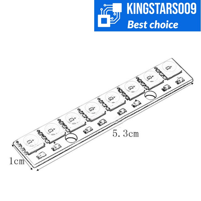 Mạch hiển thị NeoPixel 8 RGB LED thanh thẳng bao gồm 8 Led RGB WS2812 giao tiếp nối tiếp qua chuẩn giao tiếp 1 wire (chỉ cần 1 chân data duy nhất), mạch rất dễ sử dụng với bộ thư viện đi kèm với khả năng hiển thị của mỗi Led lên đến 16 triệu màu, phù hợp với rất nhiều ứng dụng trang trí, hiển thị.THÔNG SỐ KỸ THUẬT: