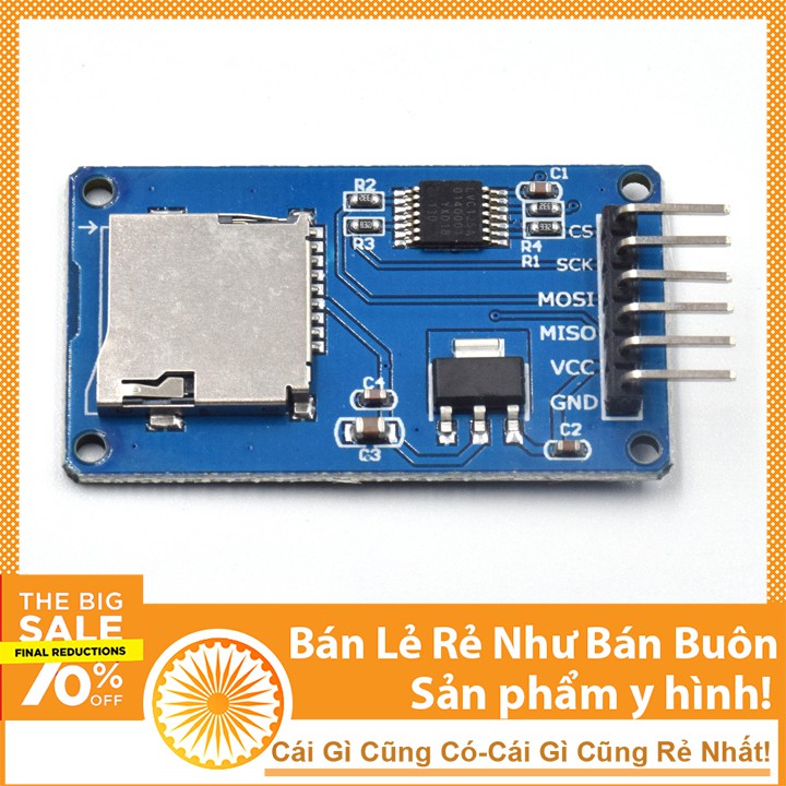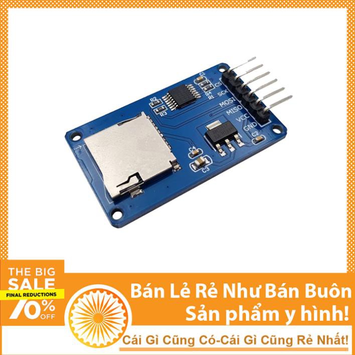 - Module Micro SD card là module đọc/ghi thẻ nhớ micro SD dành cho Arduino sử dụng giao tiếp SPI, dễ dàng sử dụng với thư viện SPI.h và SD.h trên Arduino IDE.
