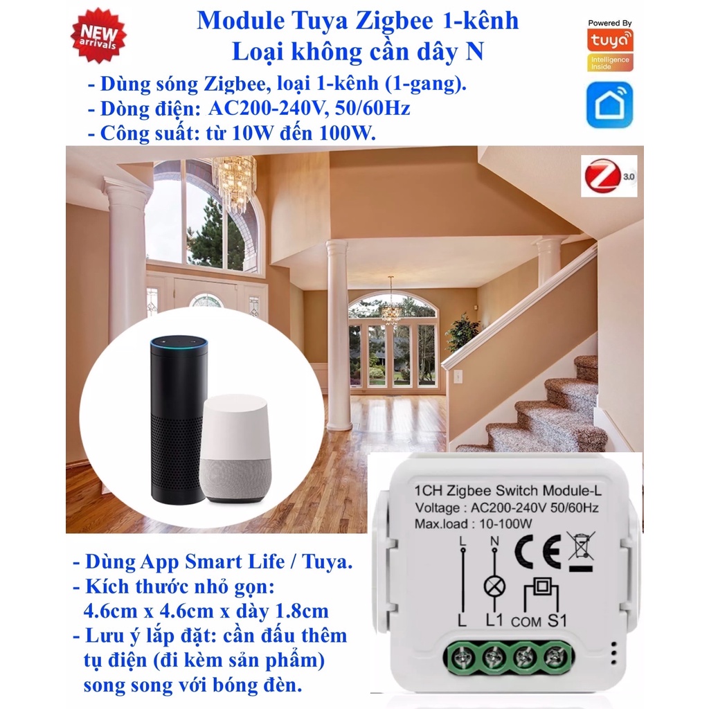 Giới thiệu Module (Mô đun) công tắc Zigbee / Wifi không cần dây N (dây Nguội), App Smart Life / Tuya / Home Assistant. Mẫu 0 -