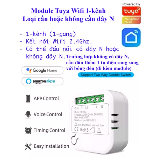 Module này phù hợp cho các công tắc âm tường sẵn có và không đi được dây N.