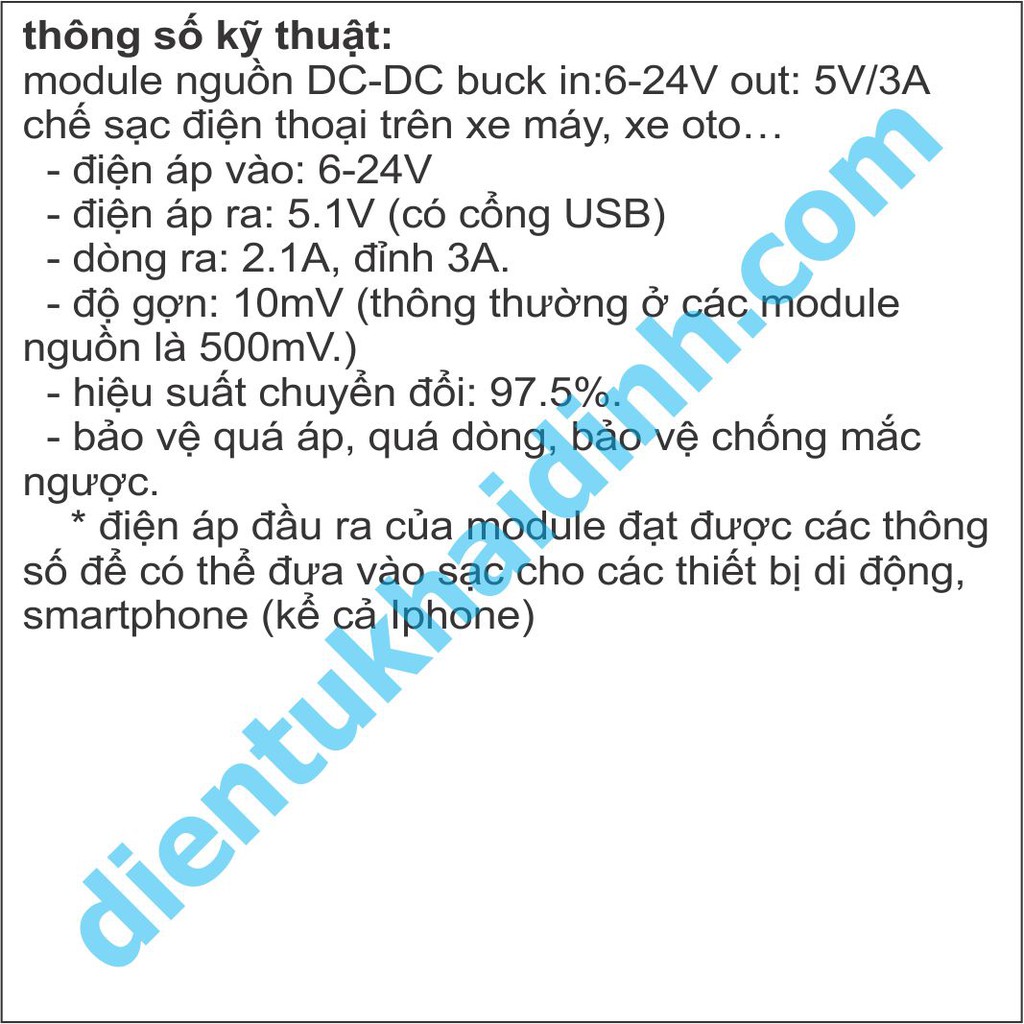 Máy tính & Laptop > Linh Kiện Máy Tính > Khác || module nguồn DC-DC buck in:6-24V out: USB 5V/3A chế sạc điện thoại trên xe máy, xe oto… kde4698Còn hàng