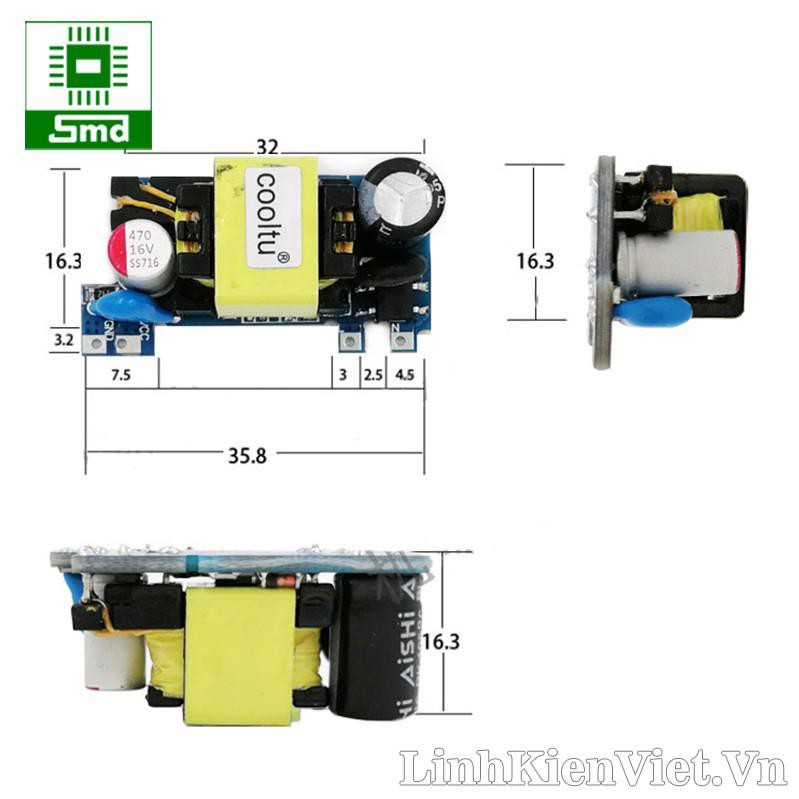 1.Module nguồn xung mini AC-DC 5V 2A