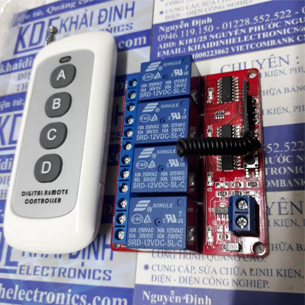 module RF 4 RELAY 12V, 433mhz, học lệnh + remote 4 phím, 1000m kde4138