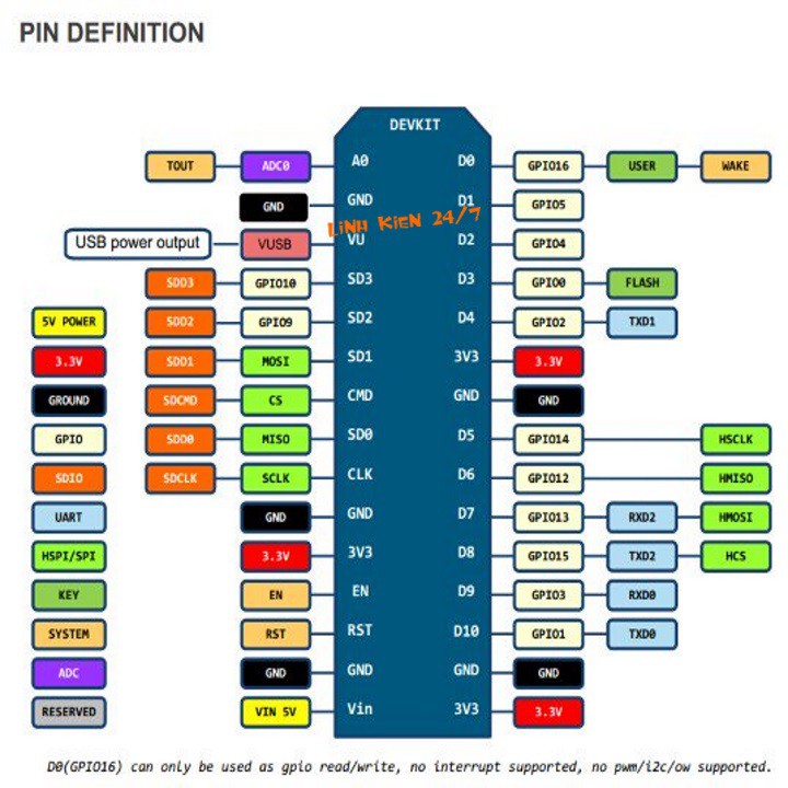 GPIO tương thích hoàn toàn với firmware Node MCU.