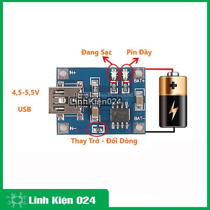 Giới thiệu MODULE Sạc Pin TP4056 1A Micro Type-C - IC Bảo Vệ Quá Dòng - Quá Áp