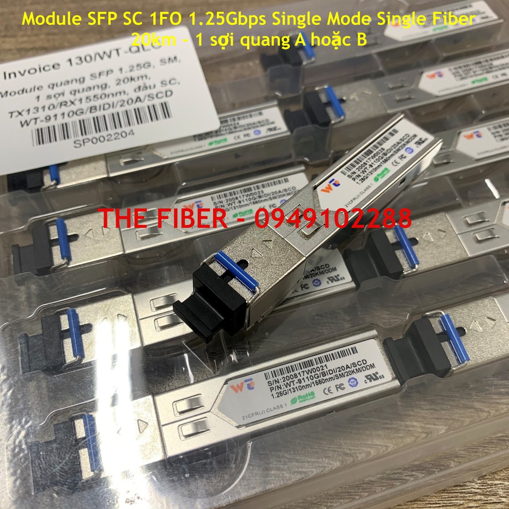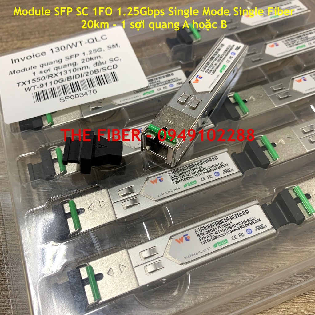 - Bước sóng đầu A: TX1310nm/RX1550nm : WT-9110G/BIDI/20A/SCD