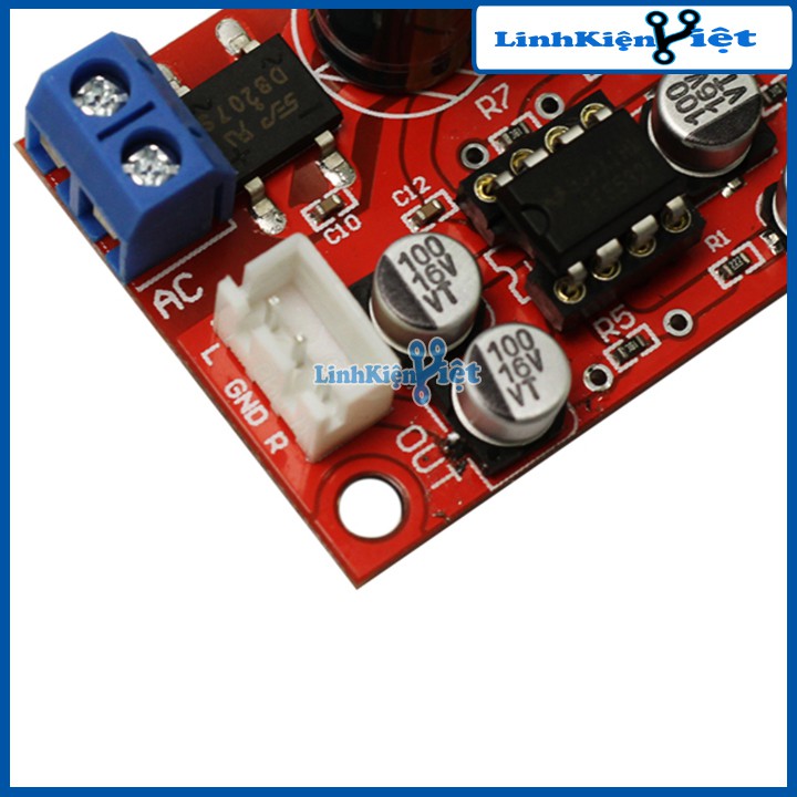 Điện áp hoạt động của module tiền khuếch đại âm thanh NE5532: Nguồn đôi 12V AC (10W)