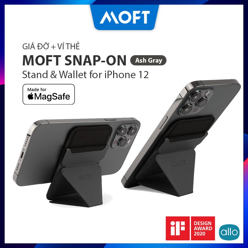 MOFT Snap-On Ash Gray Giá Đỡ + Ví Thẻ, Tích Hợp MagSafe Từ Tính, Ngăn Để 3 Thẻ Card, Dùng Cho iPhone 12/11/X Series