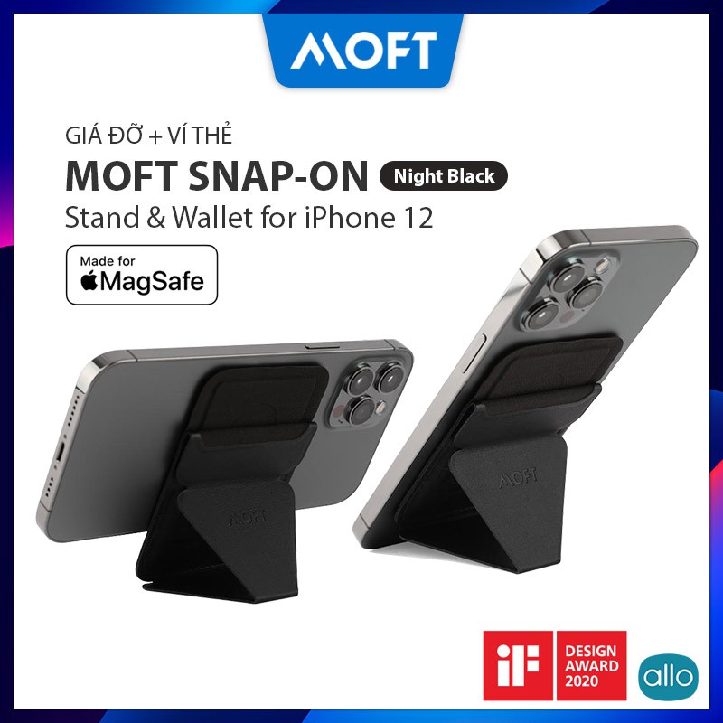 MOFT Snap-On Night Black Giá Đỡ + Ví Thẻ, Tích Hợp MagSafe Từ Tính, Ngăn Để 3 Thẻ Card, Dùng Cho iPhone 12/11/X Series