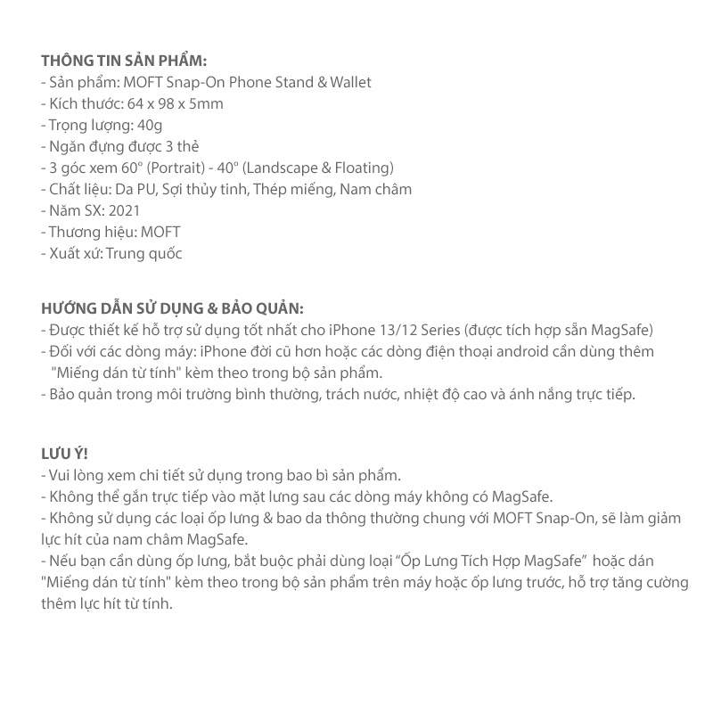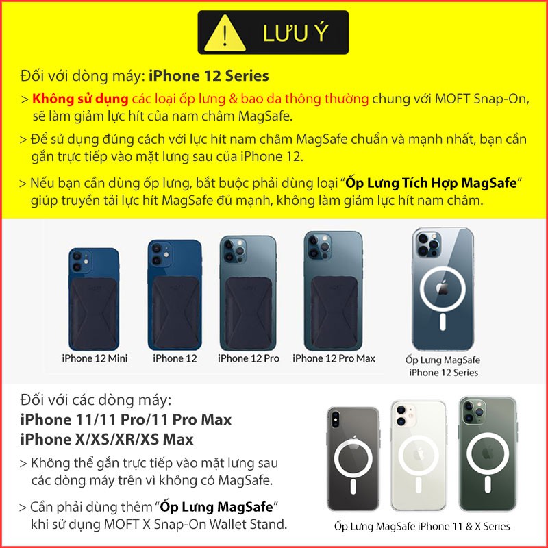 ⚠️ Cần phải dùng thêm “Ốp Lưng MagSafe” khi sử dụng MOFT X Snap-On Wallet Stand.