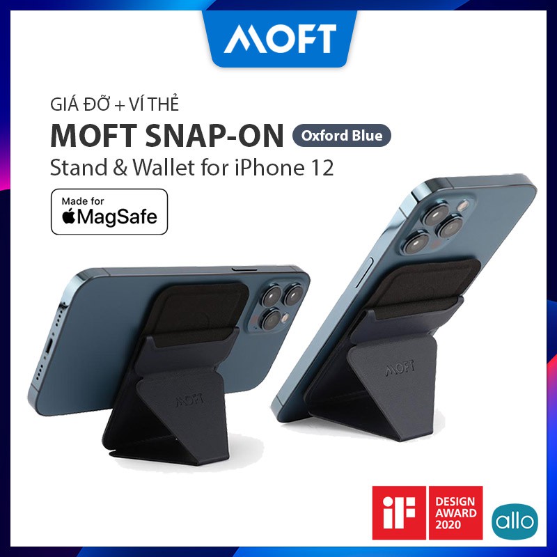 Giới thiệu MOFT Snap-On Oxford Blue Giá Đỡ + Ví Thẻ, Tích Hợp MagSafe Từ Tính, Ngăn Để 3 Thẻ Card, Dùng Cho iPhone 12/11/X Series