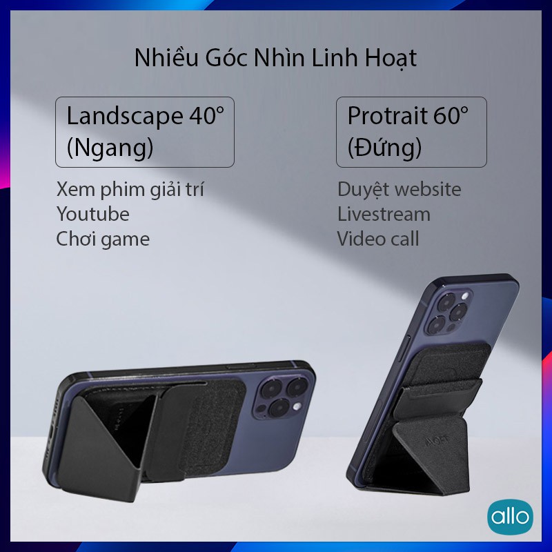 🔷 Moft X Phone Stand "Compact": 👉 Phiên bản hỗ trợ sạc không dây, tích hợp khe để thẻ (cần dán keo)