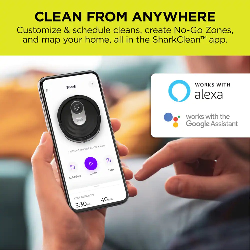 **KIỂM SOÁT HOÀN TOÀN APP SHARKCLEAN: Lên lịch dọn dẹp toàn bộ ngôi nhà hoặc làm sạch theo các phòng và khu vực cụ thể để dọn dẹp ngay bây giờ với ứng dụng SharkClean™. Hoặc điều khiển bằng giọng nói với Amazon Alexa hoặc Google Assistant.