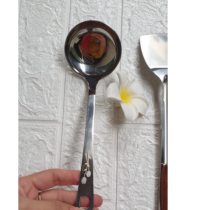 Môi/ vá múc canh, múc chè 2 bông hoa, inox 304 KT: 24x7cm (ảnh thật)