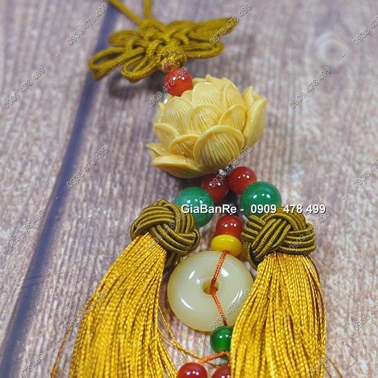 Giới thiệu MS: 6619.2 - DÂY TREO MAY MẮN CHUÔI VẢI - HOA SEN ĐƠN NHỰA POLY - VÀNG