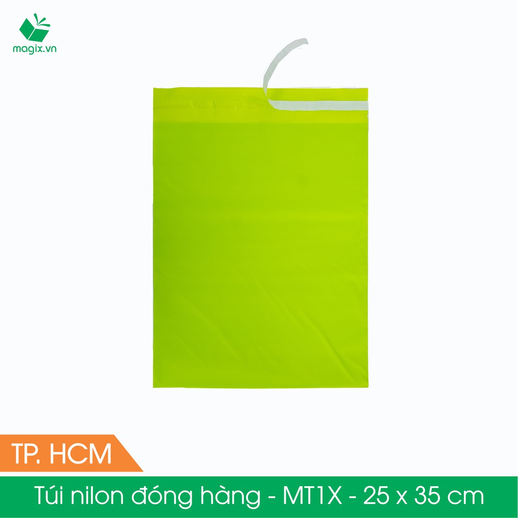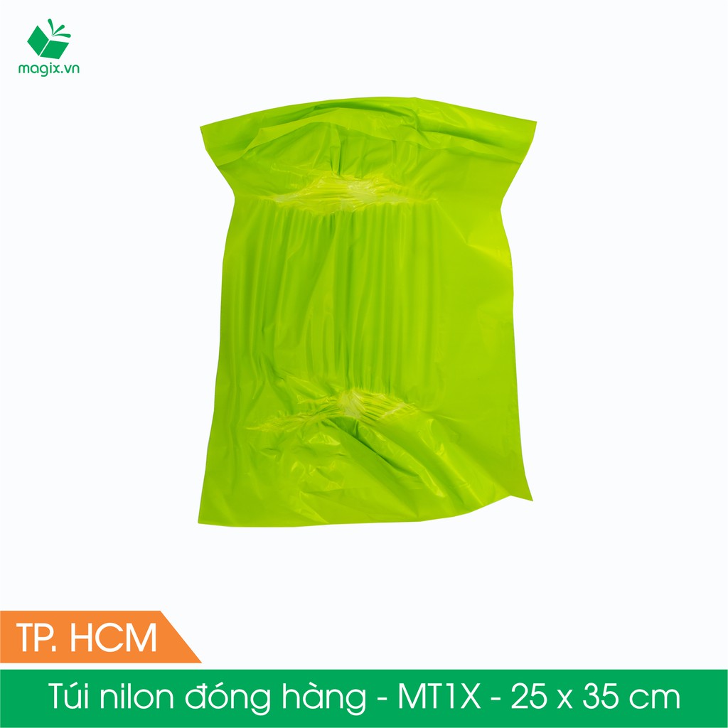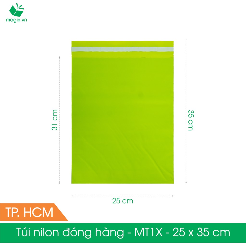 MT1X - 25x35 cm - Túi nilon gói hàng - 300 túi niêm phong đóng hàng màu xanh lá mạ