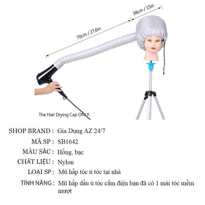 Nhà cửa & Đời sống > Đồ dùng phòng tắm > Khác || Mũ hấp tóc ủ tóc bằng điện tại nhà cao cấp chuẩn salon kích nhiệt gắn máy sẩy AZ SB1642Còn hàng